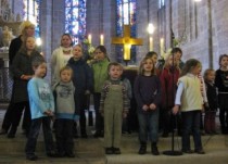 Mehr als 25 Kinder sangen im Kinderhauschor am Nikolaustag im Familiengottesdienst in der Liebfrauenkirche. Und da sie nicht nur die Erzieherinnen, sindern zum großen Teil auch die Eltern mitgebracht hatten, war die Kirche gut gefüllt. Lebhaftging es zu, als Vikar Rehkate die Nikolausgeschichte erzählte und dann die Kindergottesdienstkinder aufforderte, das Nikolausgebäck -Spekulatius - unter die Gottesdienstbesucher zu verteilen