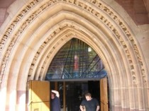 Was lange währt, wird endlich gut: Am Freitag, den 11. September hat die Glasbaufirma Peters aus Paderborn das in Auftrag gegebene Glas ins Südportal eingebaut. Auch wenn die farbliche Gestaltung vom Entwurf des Künstlers Bernd Münster abweicht, ist doch ein beeindruckendes Werk gelungen, an dem kaum jemand einfach so vorbeigehen wird, und das sich farblich gut in den Eindruck der anderen Glaskunstelemente der Liebfrauenkirche einfügt. Inzwischen hat die Fa. AZ- Buchstaben aus Witzenhausen auch die Beleuchtung für das gläserne Portal installiert. Im Rahmen des Gottesdienstes am Reformationstag wurdeneue Glaskunst nun offiziell in Gebrauch genommen. Allen, die durch Spenden zur Umsetzung beigetragen haben, sei herzlich für ihr Engagement gedankt.