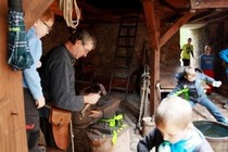 Einen erlebnisreichen Tag verbrachten 19 Kinder und 11 Erwachsene auf der Tannenburg bei Nentershausen. Dem Schmied bei der Arbeit zusehen und vielleicht selbst mal mit dem großen Blasebalg das Feuer schüren, Brotfladen ausrollen und garnieren und das selbstgebackene Produkt dann auch selbst verspeisen, ein Spaziergang zur nahegelegenen Quelle - vielfältige Eindrücken für Groß und Klein. Mit einer Andacht zu Beginn und einer echten "Tafeley", bei der "Schlund und Wanst" auf ihre Kosten kamen, am Ende wurde der Besuch gerahmt. Dass manche Kinder schon auf der Heimfahrt im Auto einschliefen, war sicher eher ein Zeichen der Erschöpfung als der Langeweile.