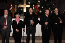 Martin Wendt, Johannes Grüne und Bernd-Uwe Rams begeisterten in der Silvesternacht mit ihren Instrumenten die Zuhörer in der annähernd voll besetzten Liebfrauenkirche. Barockmusik (u.a. von Händel und Corelli) stand neben modernen Werken wie dem "Slow Blues". Christopher Weik, der an der Orgel begleitete, ergänzte das Programm als Solist u.a. um eine Toccata und einen Ragtime. Die vom Publikum geforderte Zugabe brachte noch ein "neues" Instrument zu Gehör: Hildegard Rams, die die Fanfarenstücke mit der Pauke unterlegt hatte, wechselte an die Blockflöte.